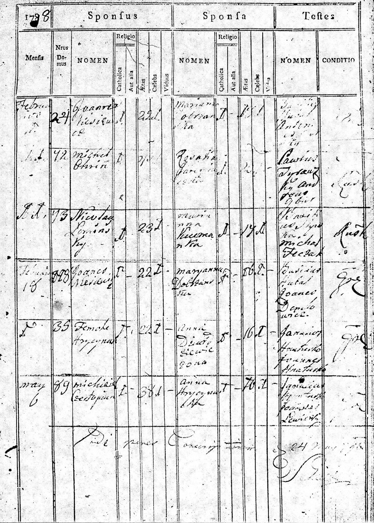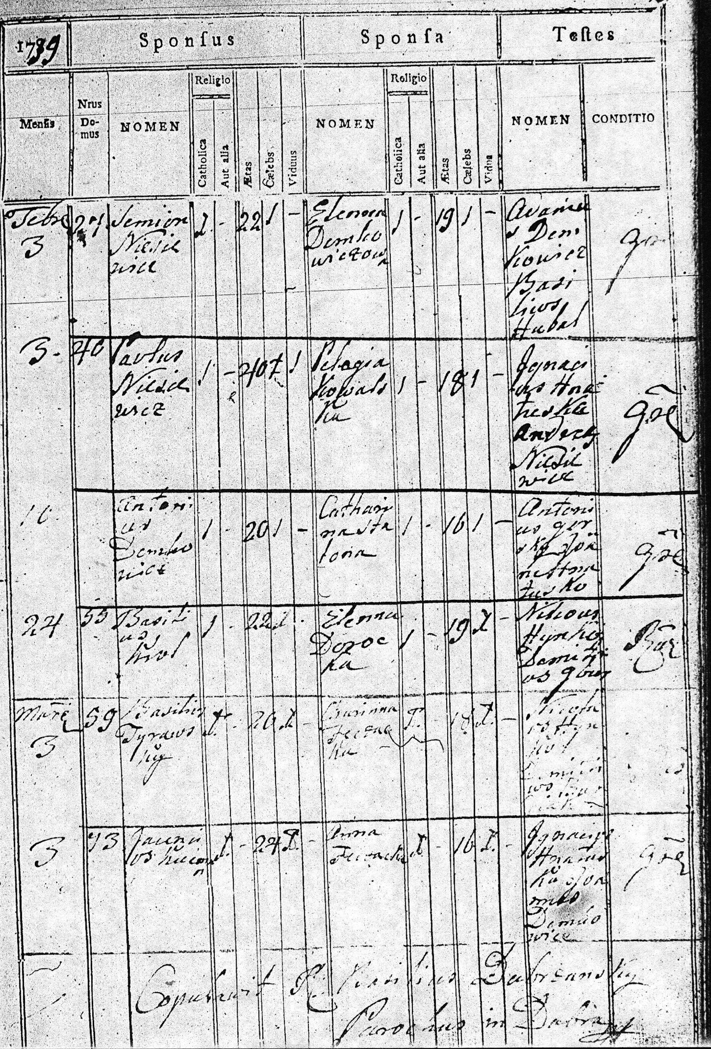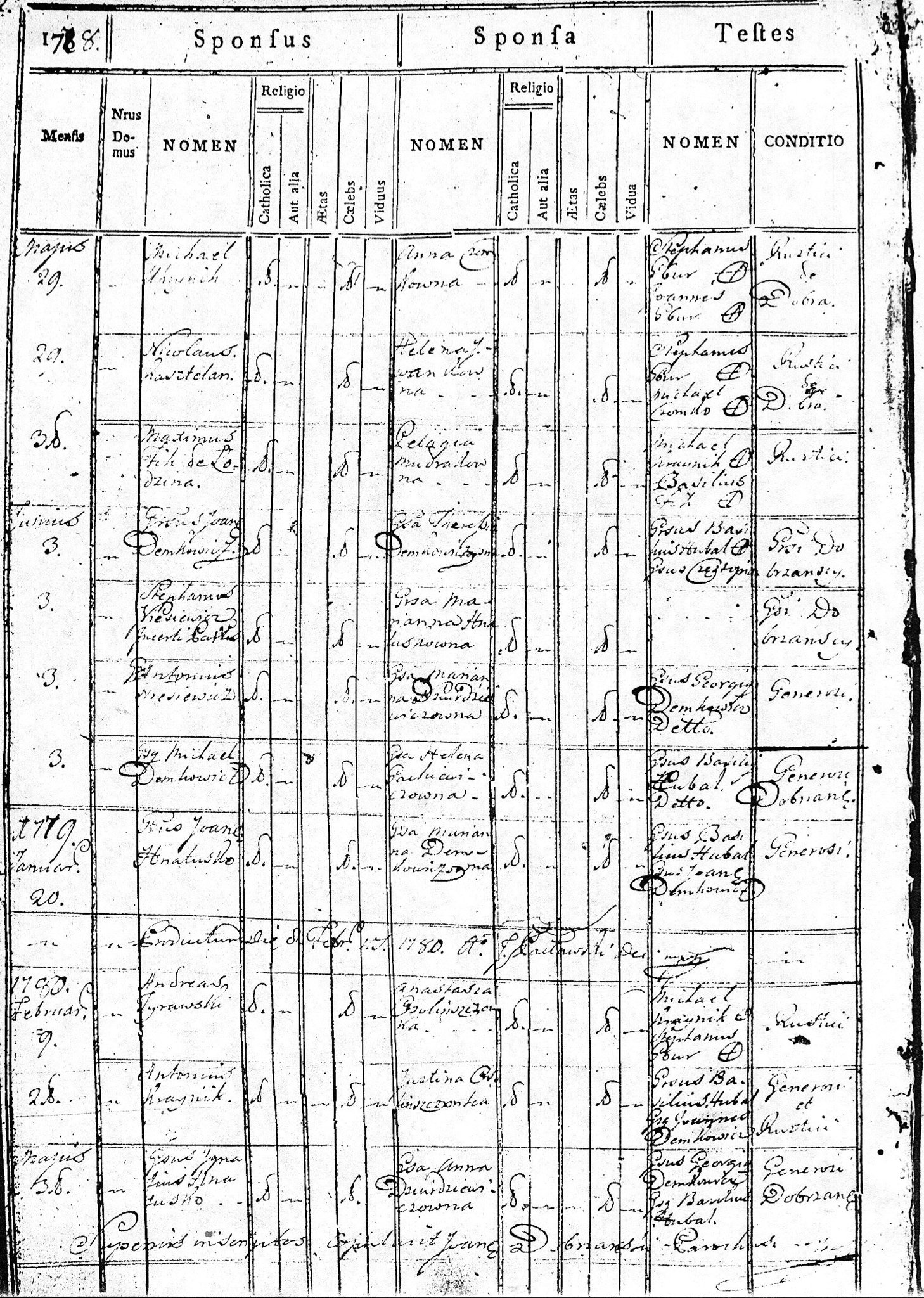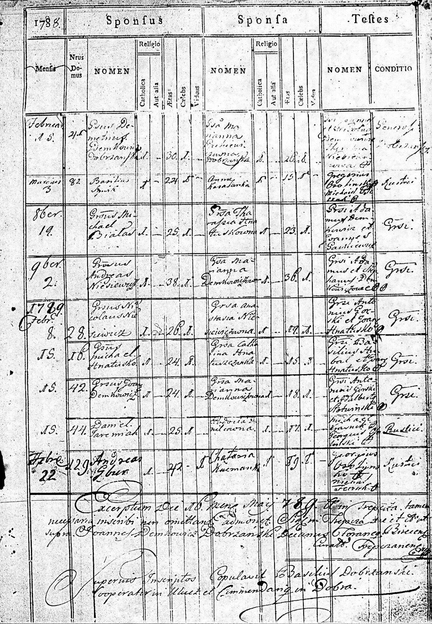 1788 18 5 Demetrius Demkowicz 30? Marianna Gackiewicz ? 26