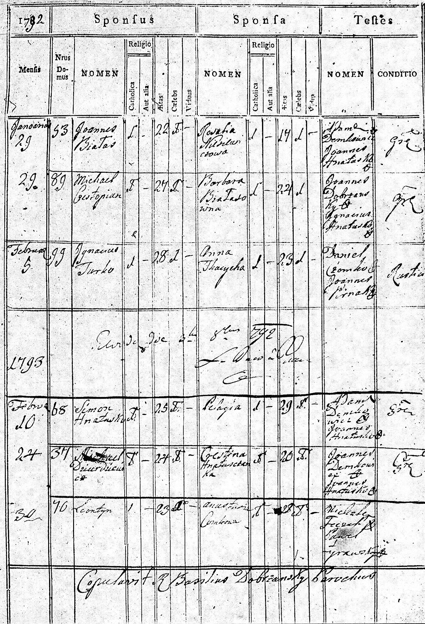 1792 25 7 Michał Czestopian 27 Barbara Białas 24