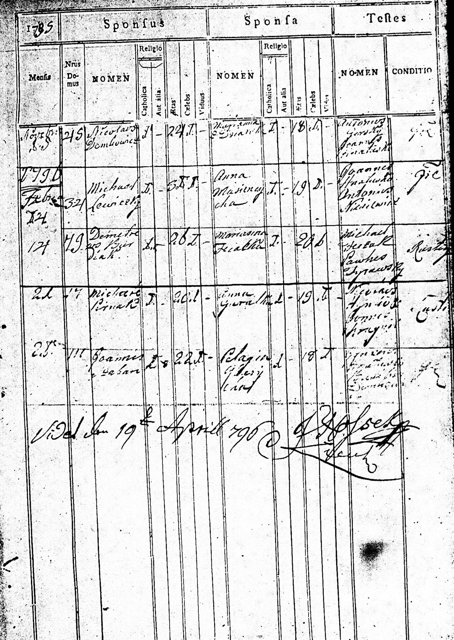 1785 15 4 Jan Demkowicz 20 Teresa Demkowicz 19