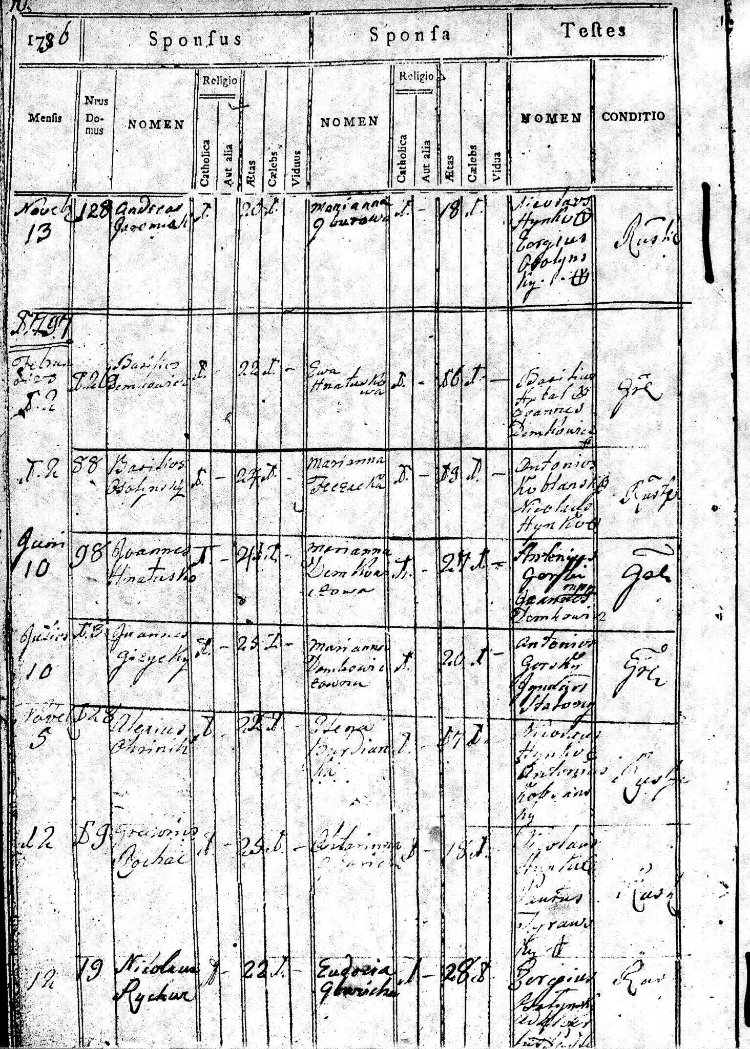 1797 34 10 Mikołaj Rychac 22 Eudoksja Gbur 28