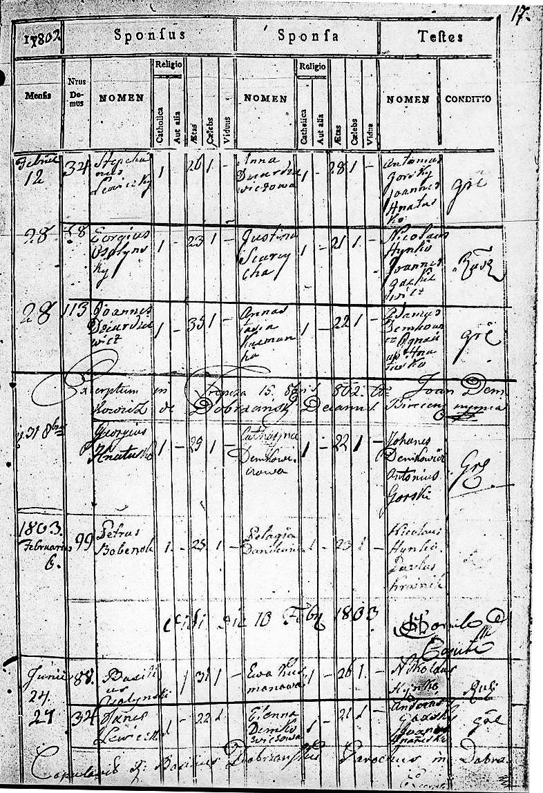 1803 56 17 Piotr Bobenok 25 Pelagia Danilewicz 23