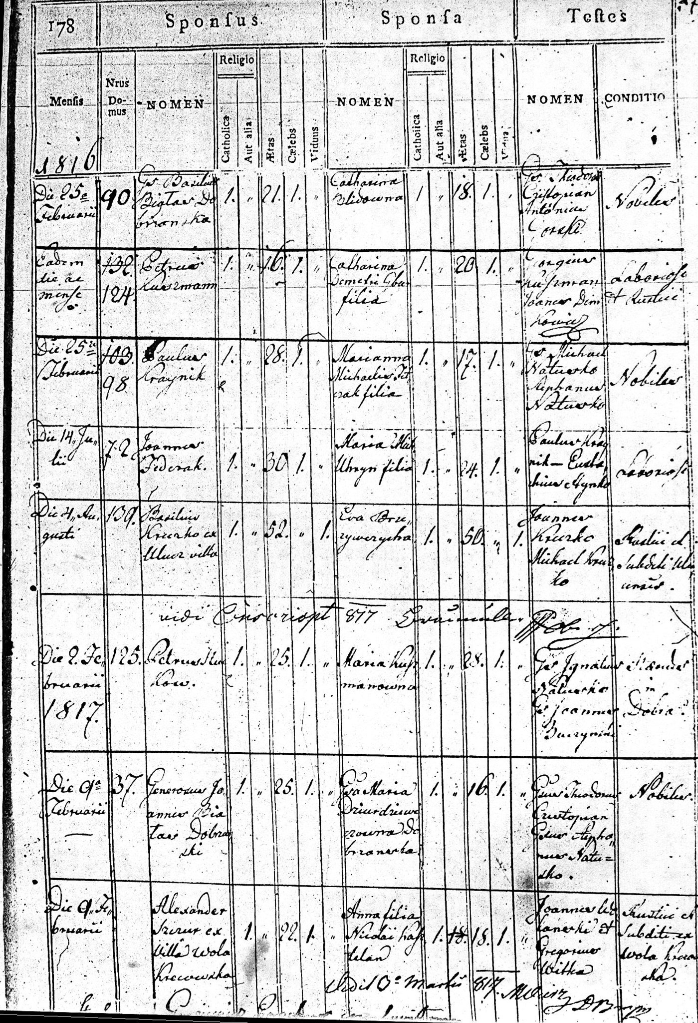 1817 94 27 Aleksander Szczur 28 Anna Kasztelan 18 16