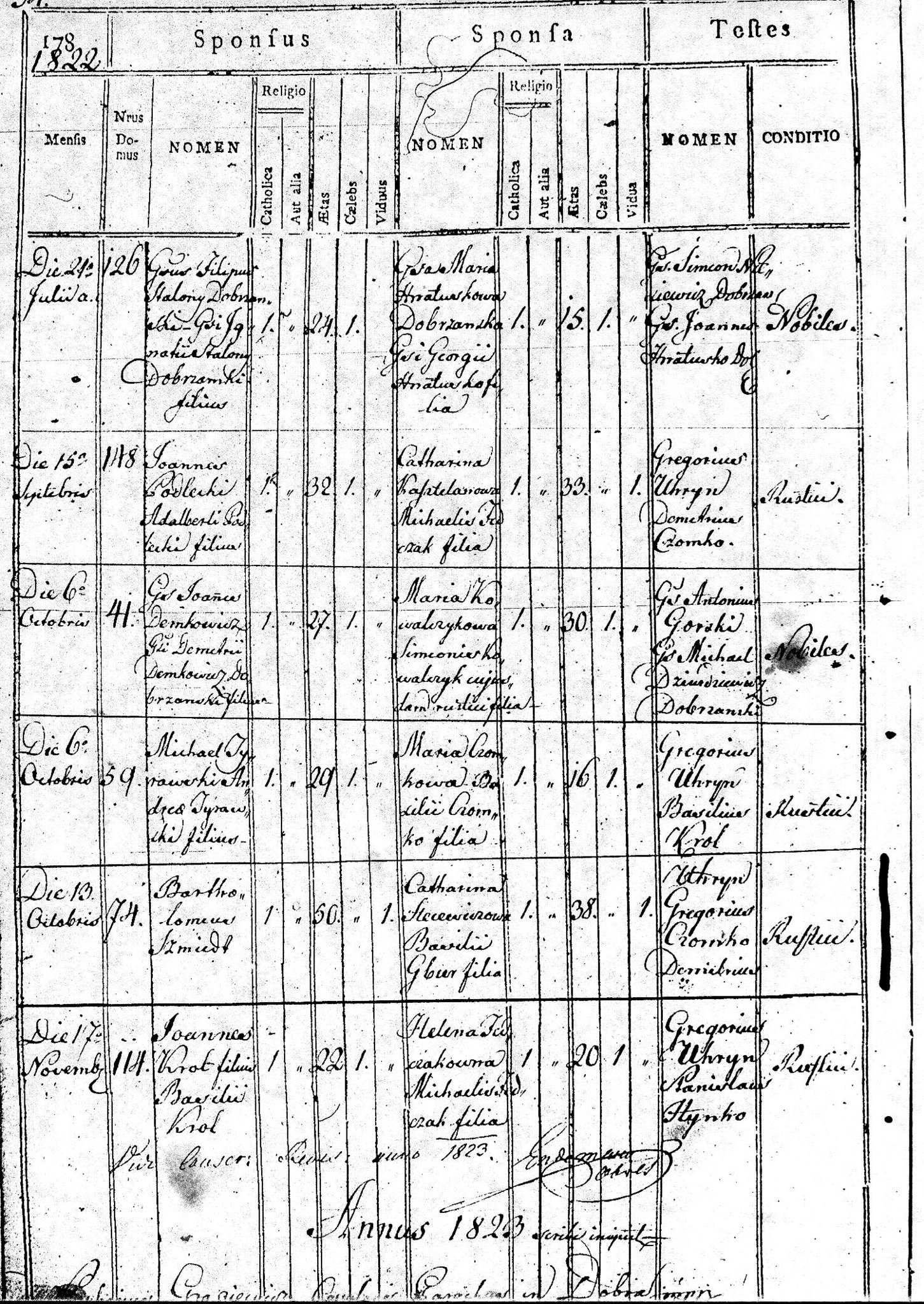1823 126 35 Józef Cisowski 22 Anastazja Gbur 18 60