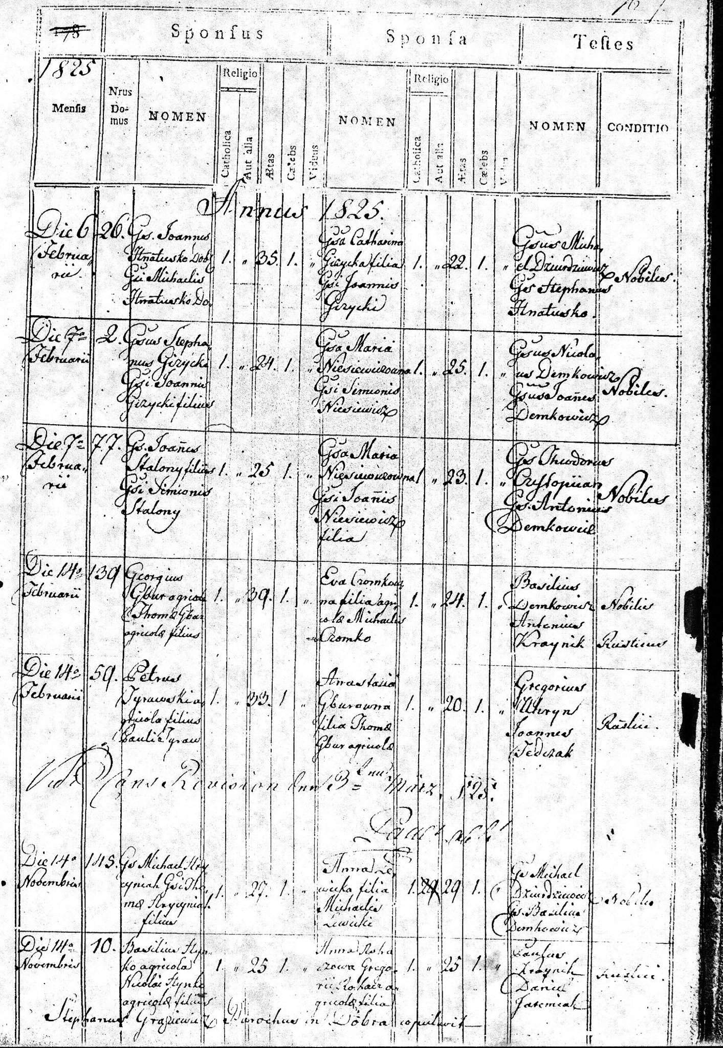 1825 133 37 Jan Stalony 25 Maria Niesiewicz 23 69