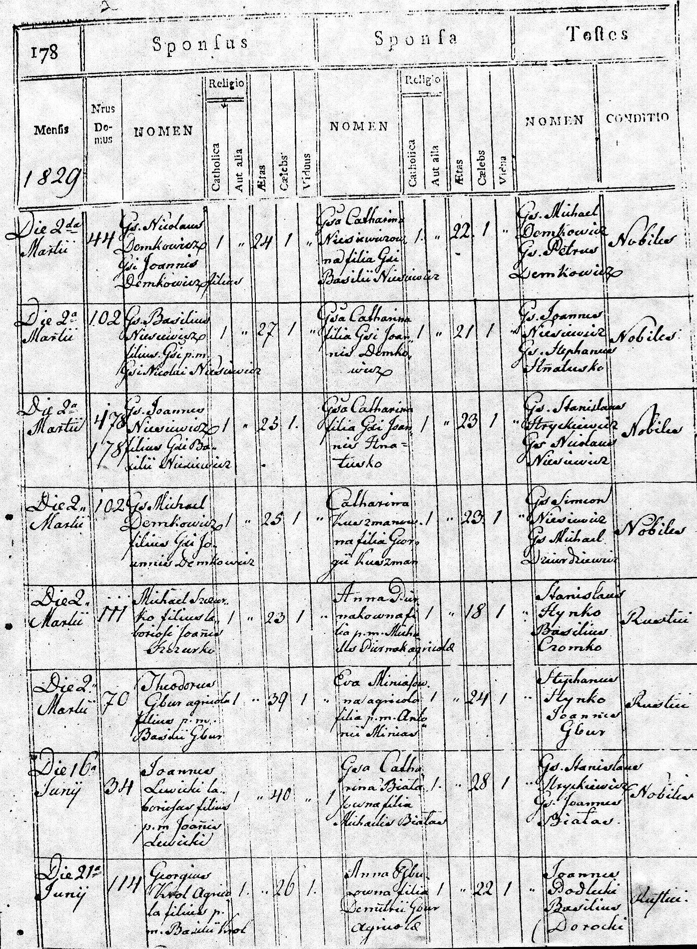 1829 147 41 Mikołaj Demkowicz 24 Katarzyna Niesiewicz 22 95