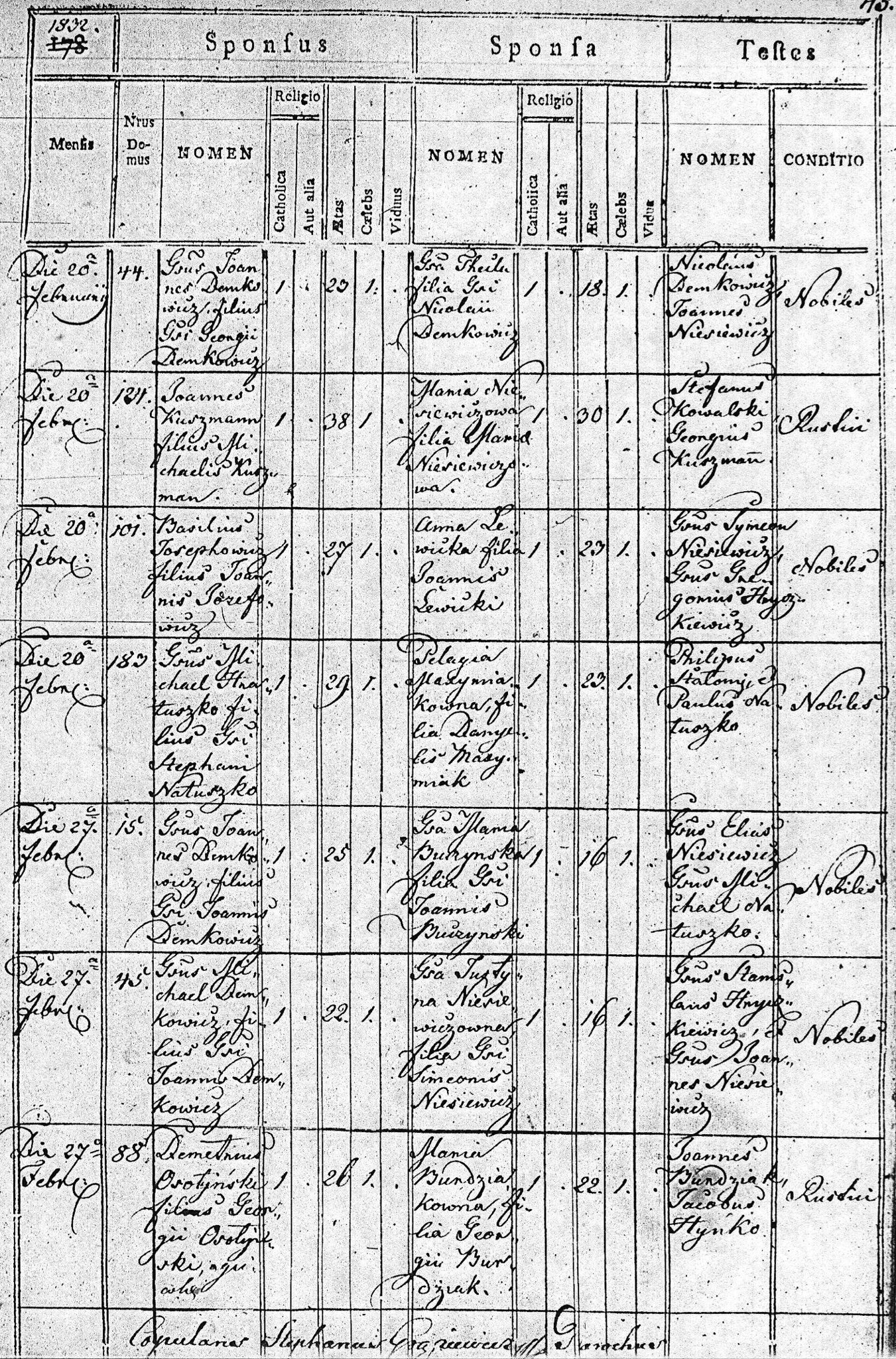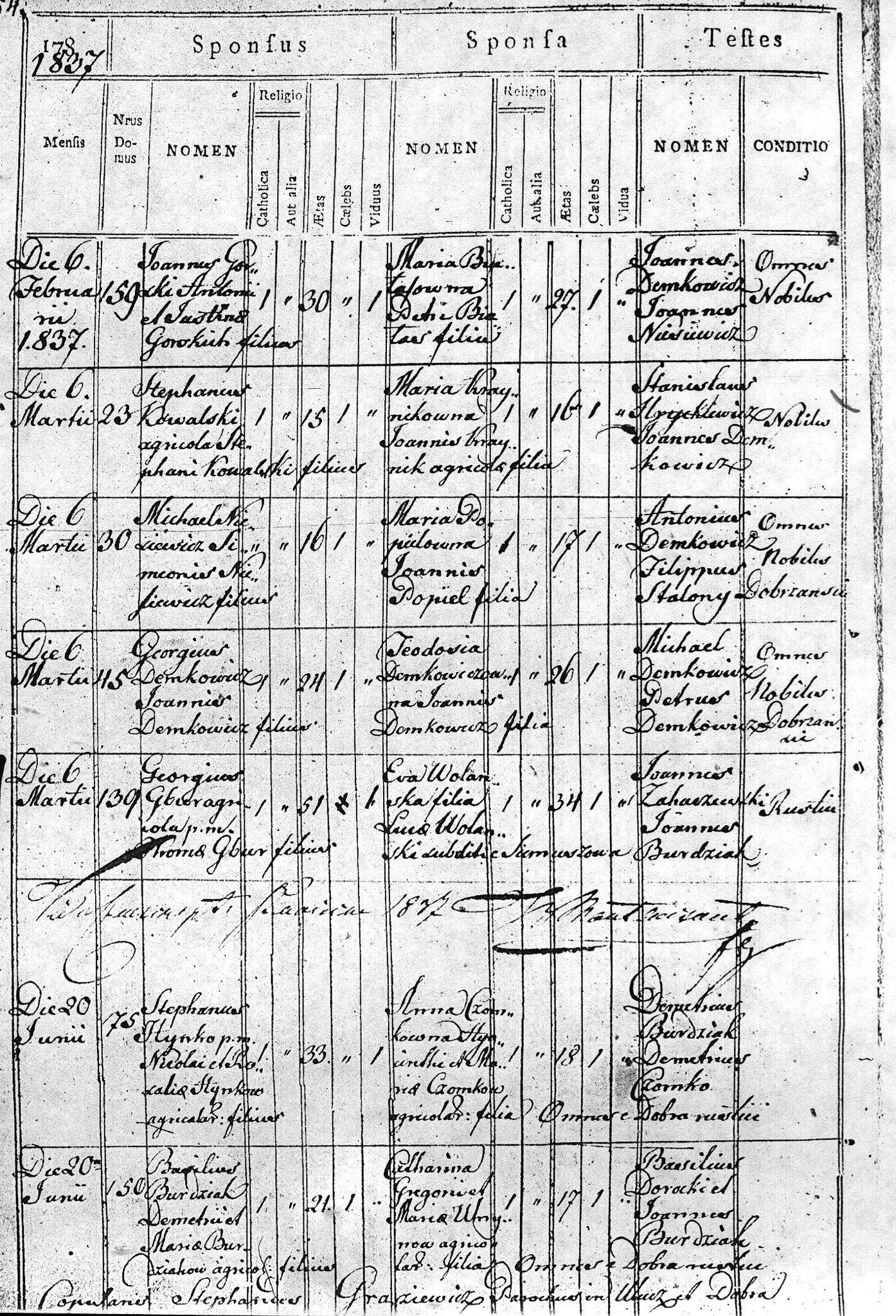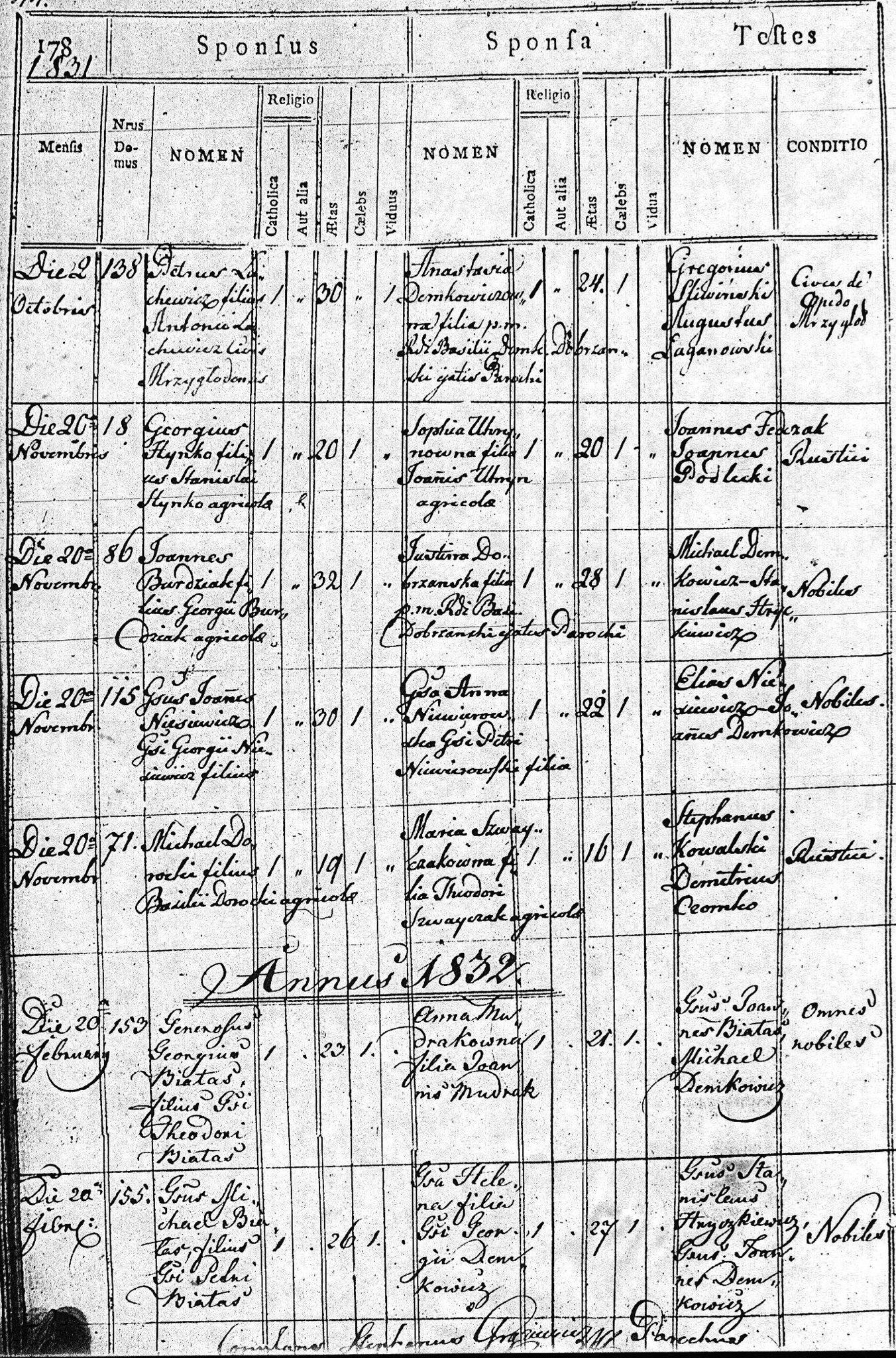1832 161 45 Demetrius Osotyński 26 Maria Burdziak 22 131
