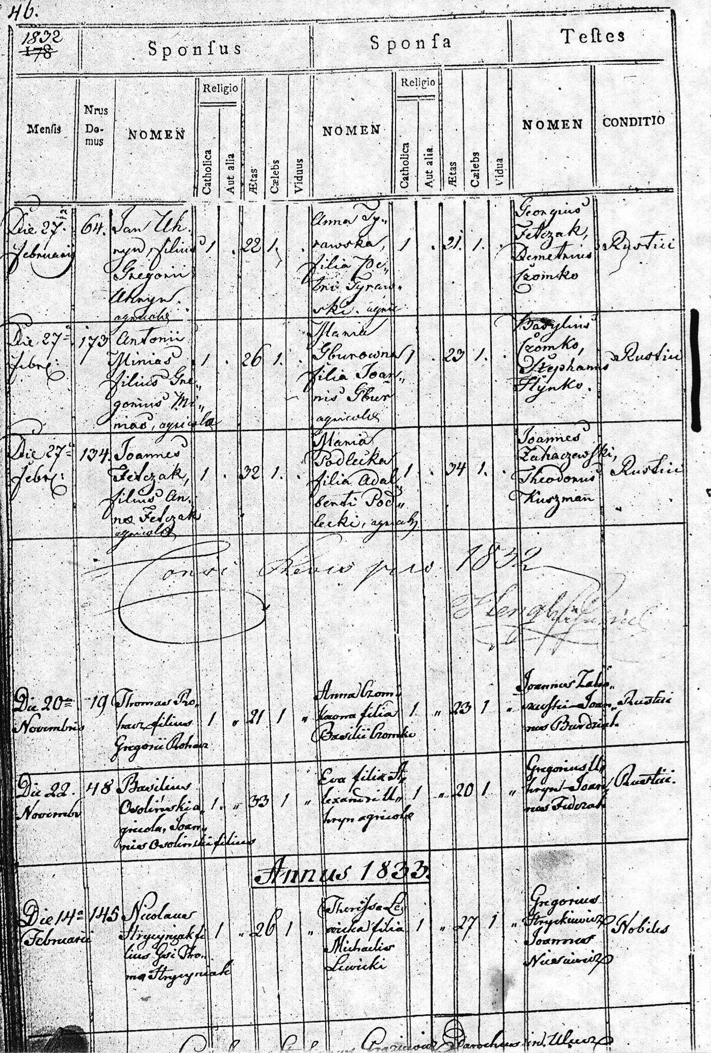 1832 165 46 Jan Uhryn 22 Anna Tyrawski 21 132