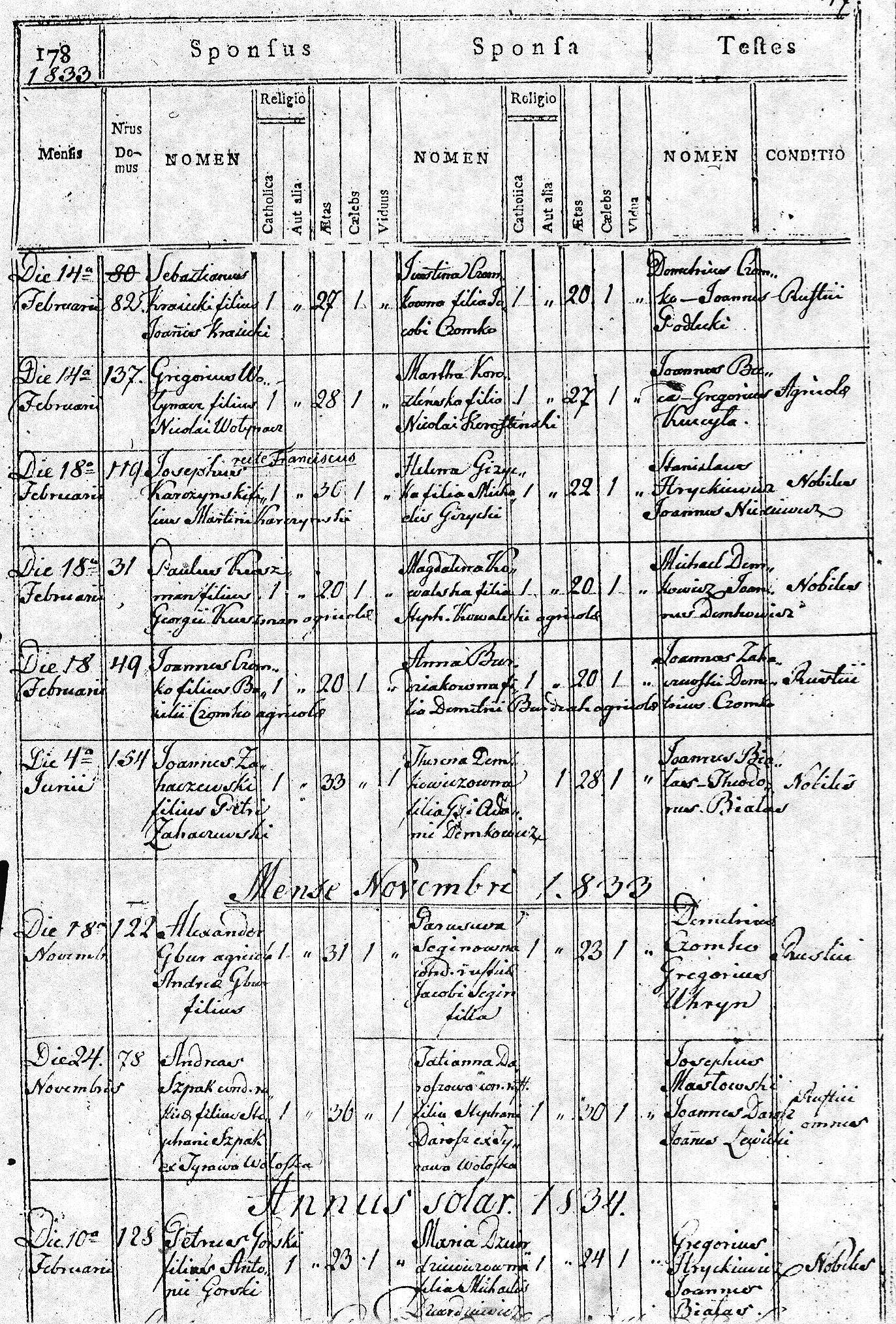 1834 172 48 Jan Uhryn 19 Maria Stecewicz 21 151
