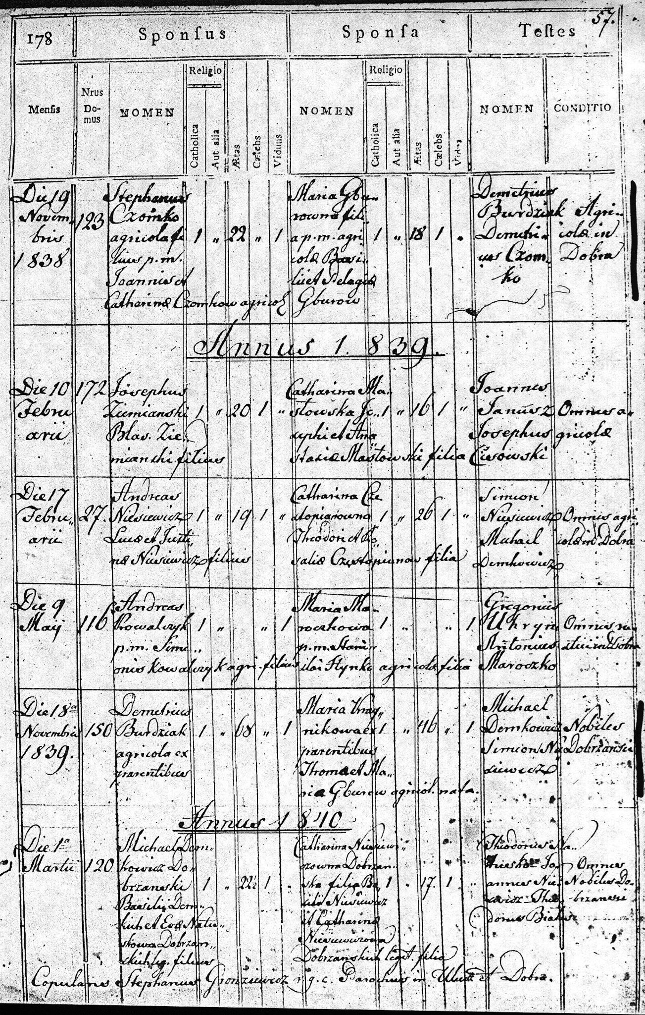 1839 199 57 Józef Ziemianski 20 Katarzyna Masłowski 16 205