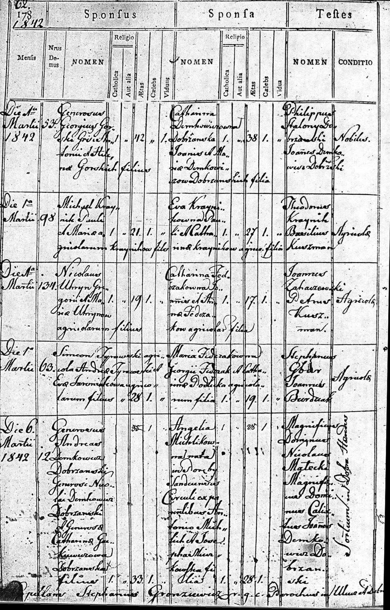 1842 220 62 Szymon Tyrawski 28 Maria Fedczak 19 234
