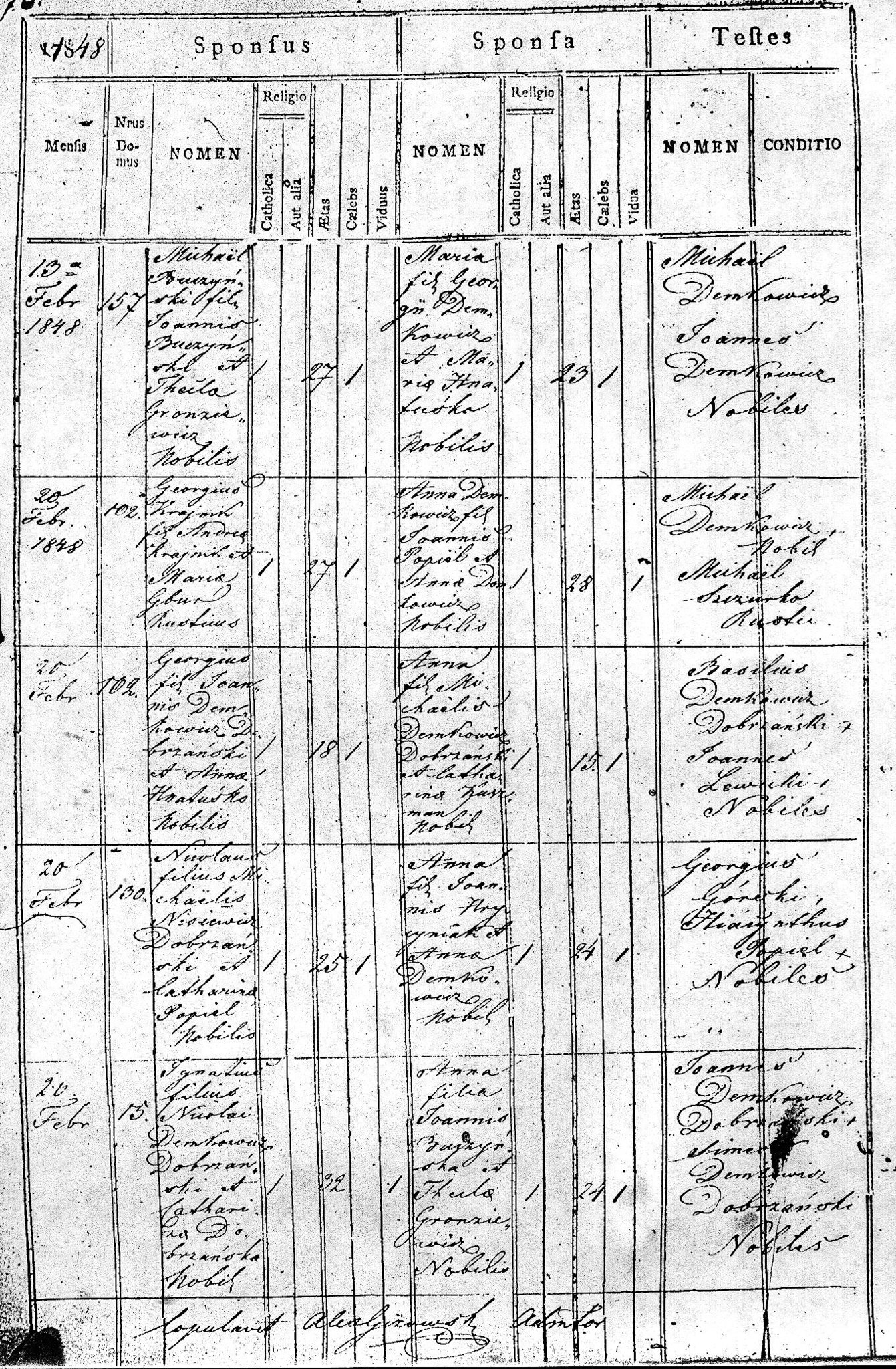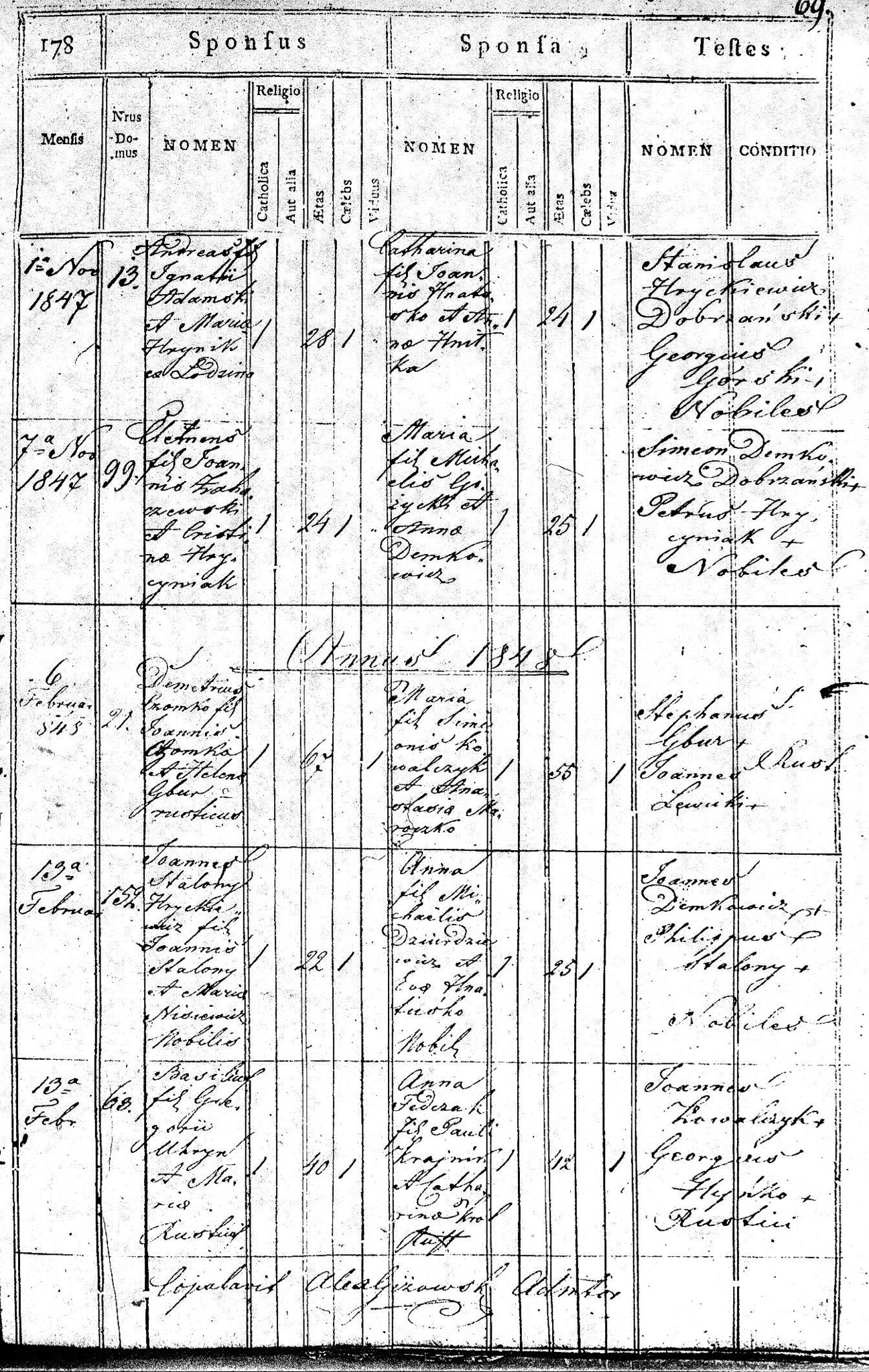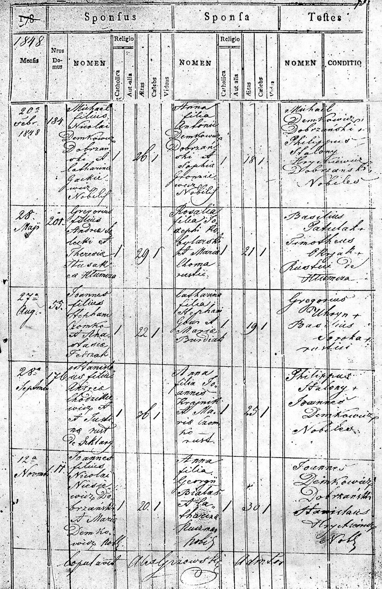 1848 256 71 Grzegorz Solecki 29 Rozalia Kobylarski 21 284