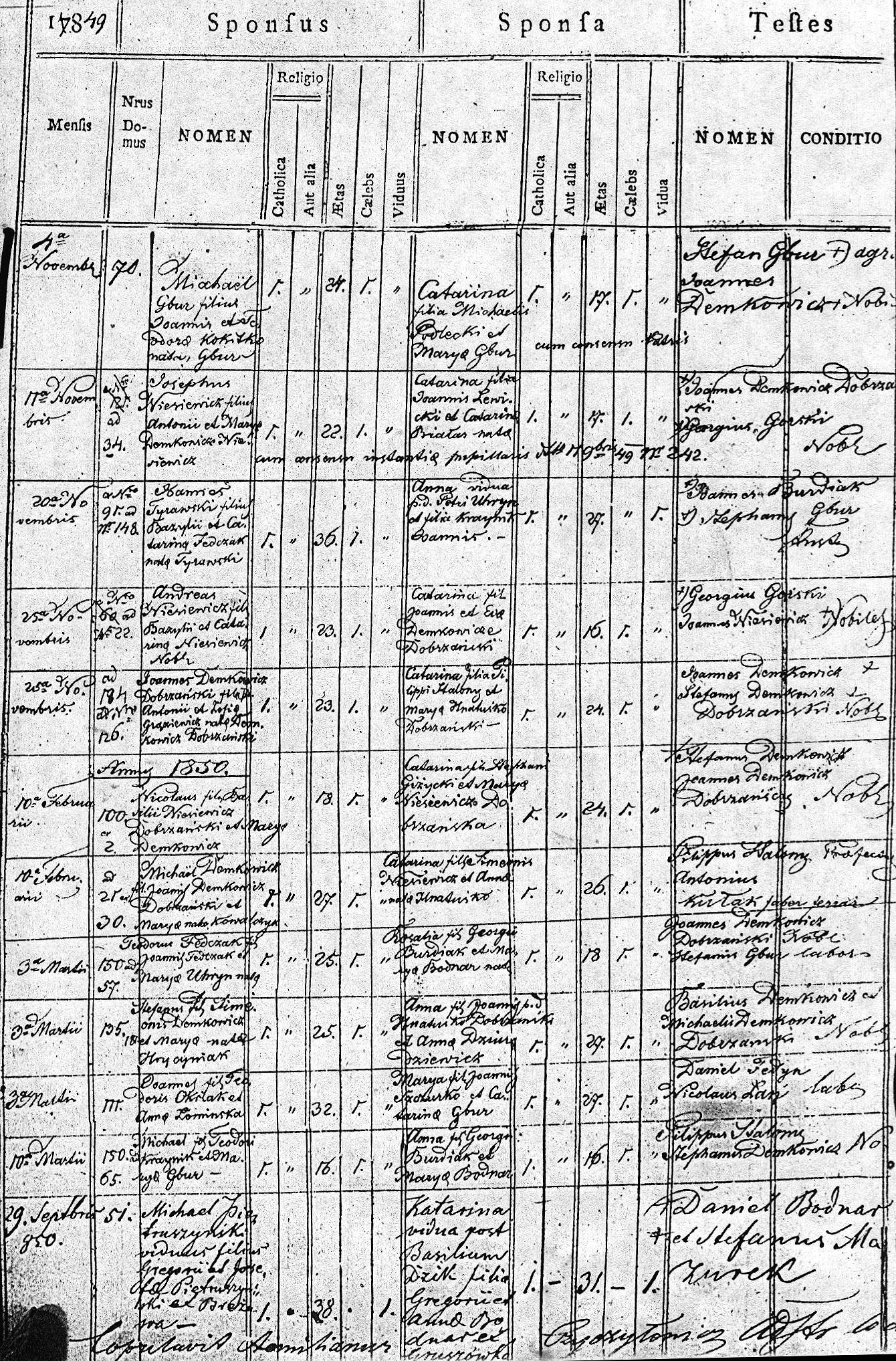 1849 260 72 Mikołaj Białas 29 Maria Krajnik 19 292