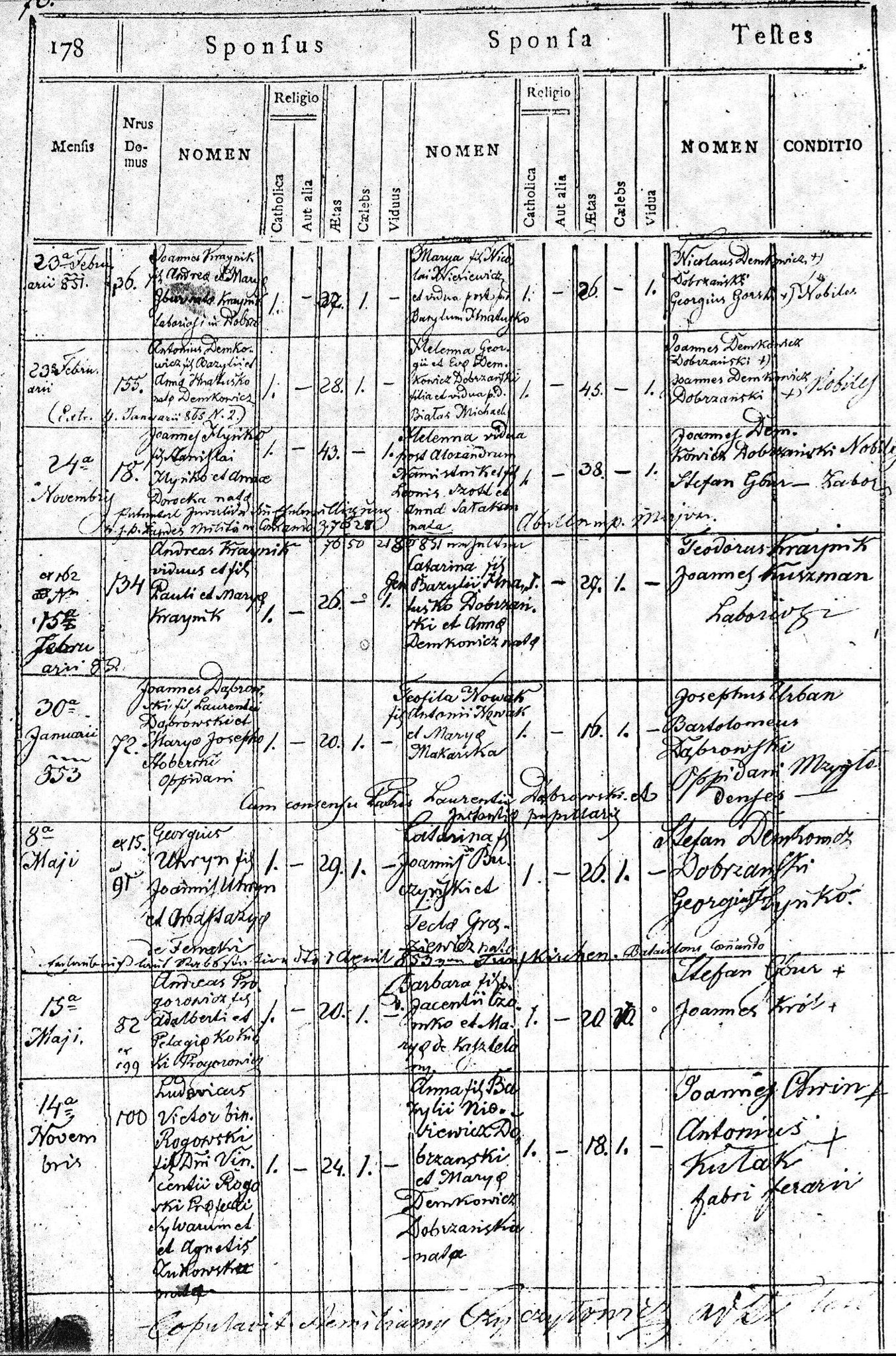 1848 253 70 Michał Buczyński 27 Maria Demkowicz 23 278