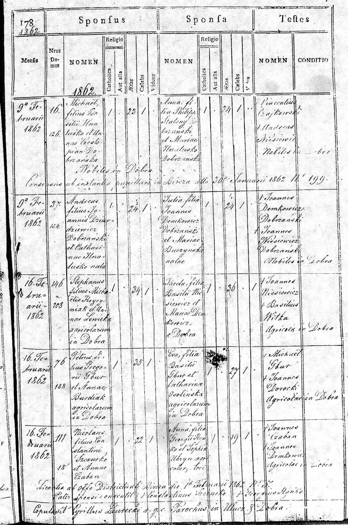 Greek Catholic marriage records parish of Dobra Szlachecka