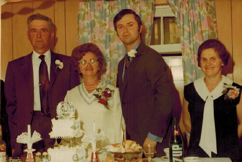 Old photo from the fifties: me with my Father, my grandfather Michał, my uncle Józef from Siciny. I was a teetotaler at that time but how to drink I learned fast. |