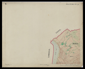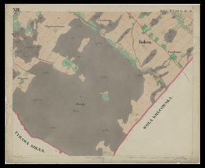 Mapa catastralna Dobrej z 1852 r. z zasobów Archiwum Państwowego w Przemyślu.