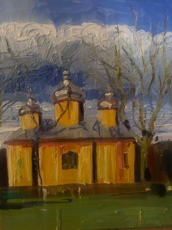 Artur Zienko, cerkiew w Dobrej, oil on canvass 40x50 cm, commissioned by Jan Popiel